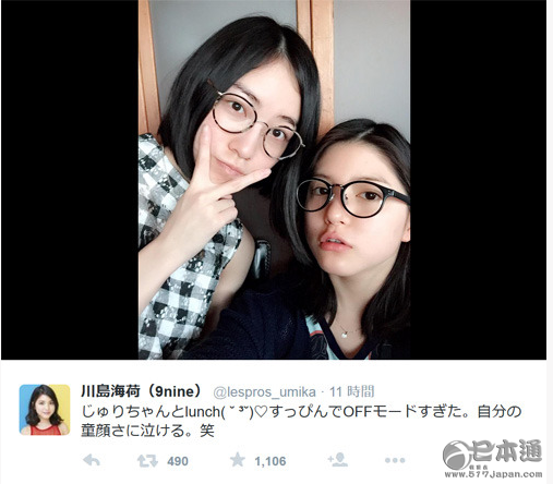 日本のアイドルグループ9nine のメンバーで女優の川島海荷とSKE48メンバーの松井珠理奈