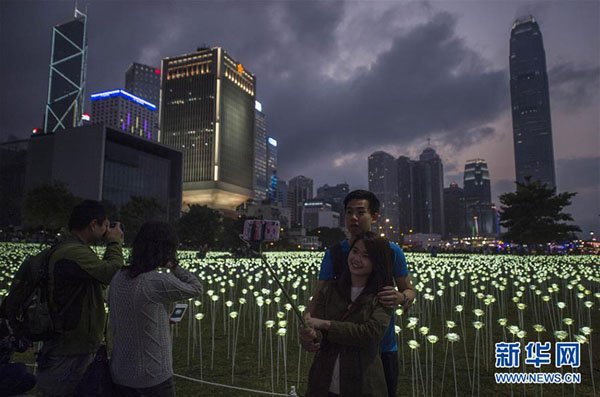 バレンタインデーに数万本のLED薔薇、香港を幻想的に照らす