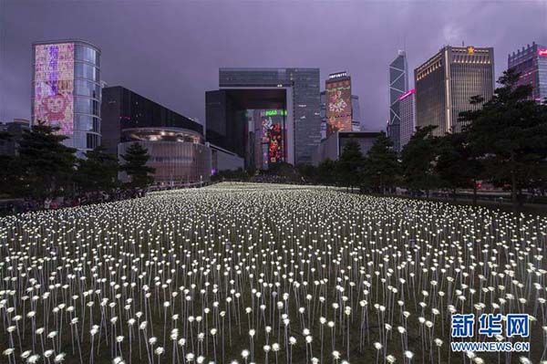 バレンタインデーに数万本のLED薔薇、香港を幻想的に照らす